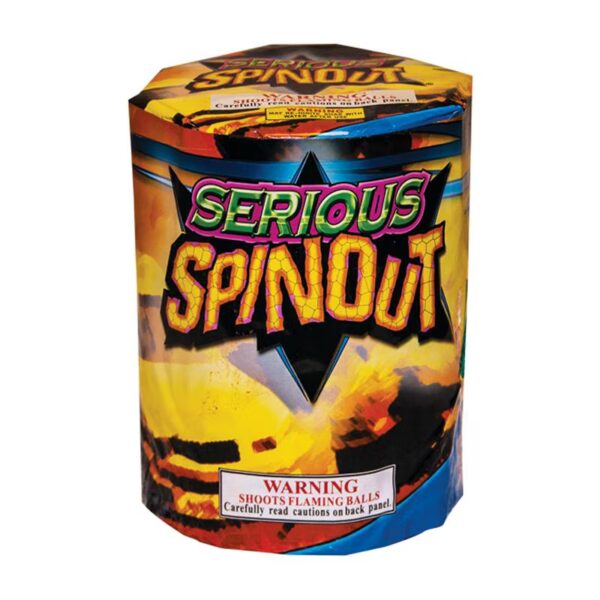 Burn rubber in the sky with Serious Spinout by Showtime Fireworks—the twisting 8-shot 200 gram repeater featuring red tails to whirlwinds and alternating yellow/green bursts with big crackling finales! This high-performance aerial cake delivers spinning action and loud crackle for intense excitement. Ideal for dynamic backyard displays and high-energy consumer fireworks.